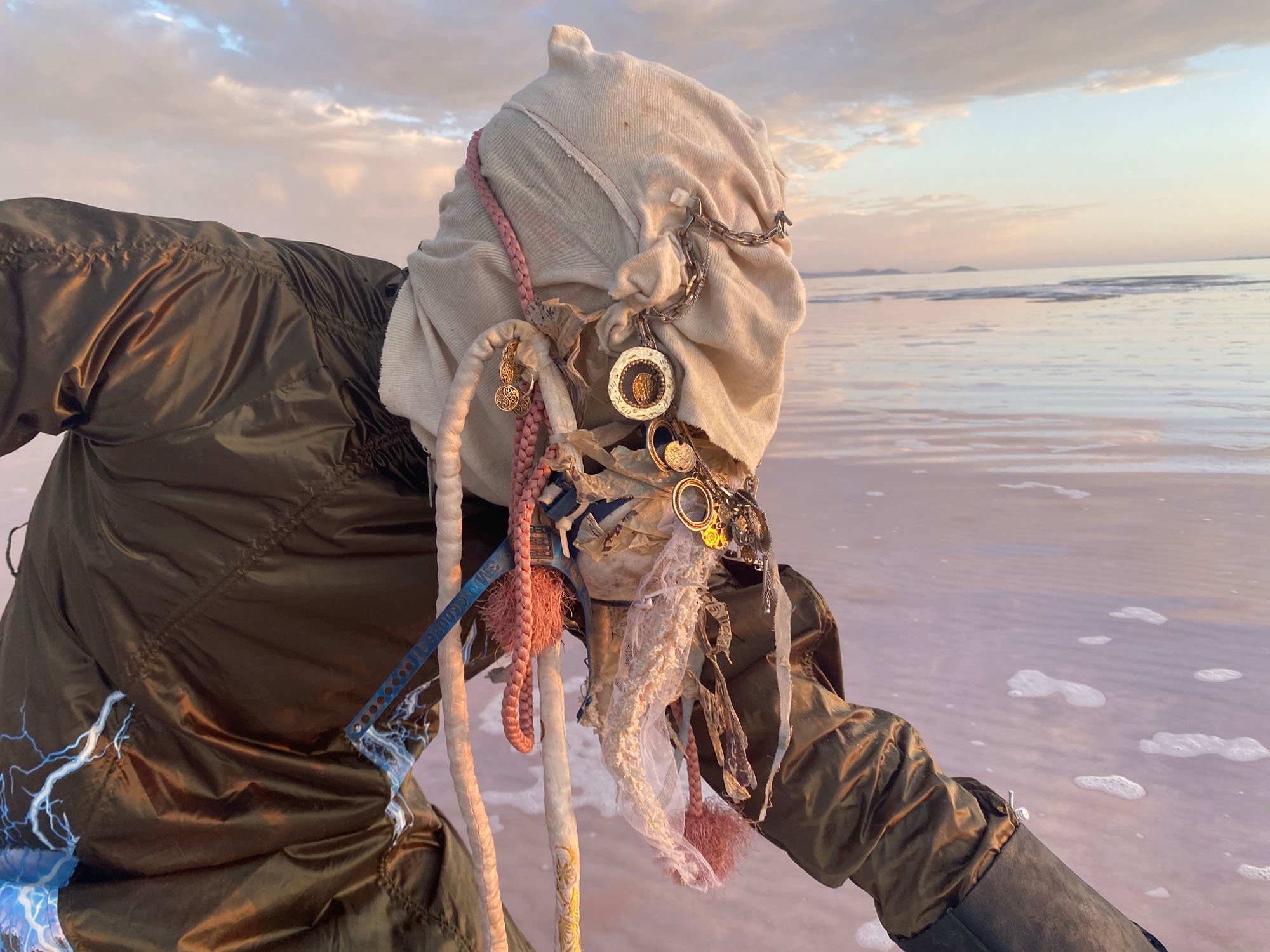 As stipulated in our contractual agreement with Instagram: the eternal plane of suspension, sparkling, elysian blood breathes through the lapping waves of water, removed from coursing veins, as it tumbles in a rhythmic exchange of skin cells, iridescent fabric, crystalline salt, and halophilic bacteria. The horizon disappears to eyes born before we hug the sun. All of consciousness’ riders are put to unending sleep. Sensory deprivation lit by supple reflected beams. Life interrupting the continuity of oblivion. We do not know who made it. It is older than God.